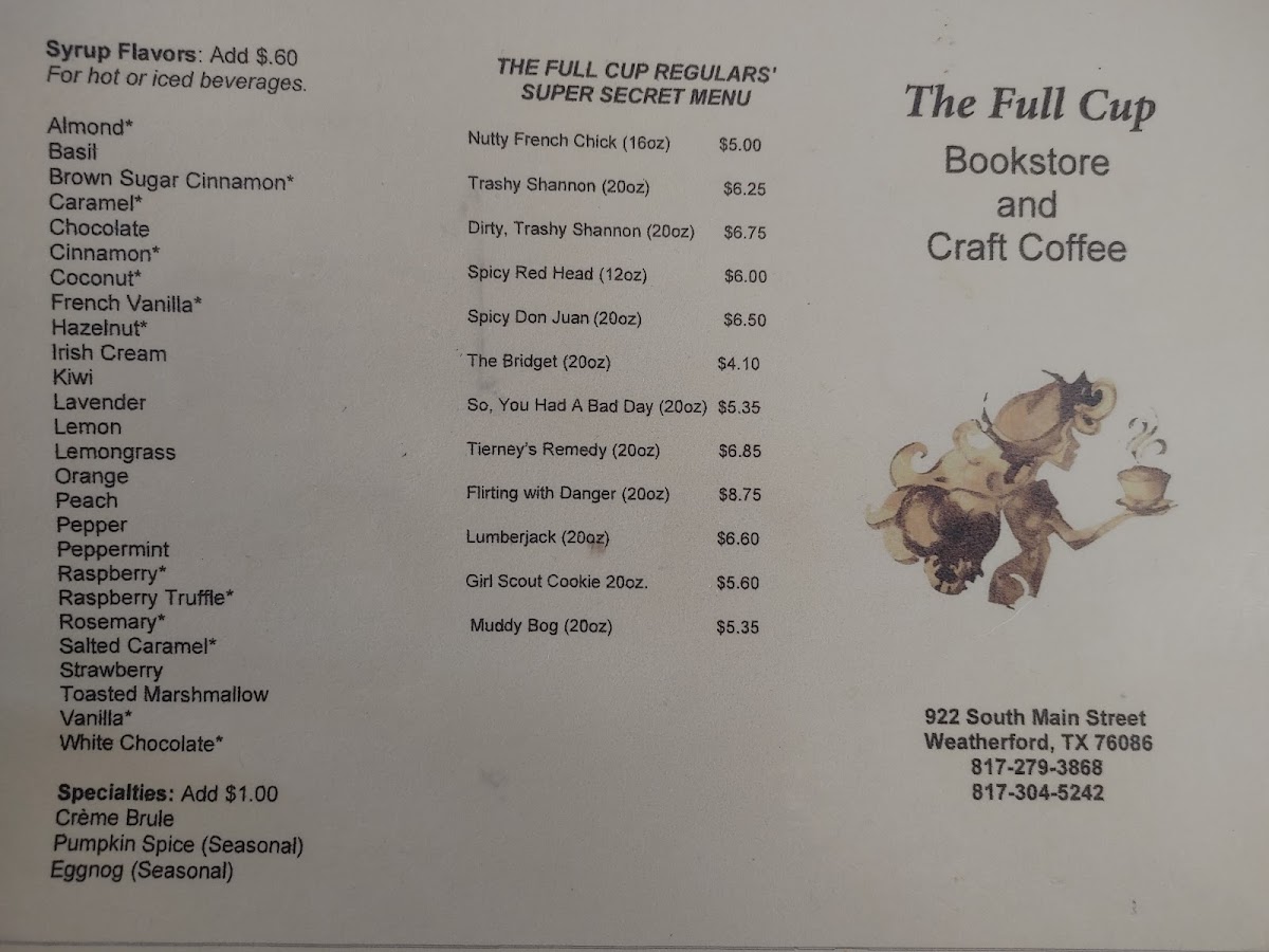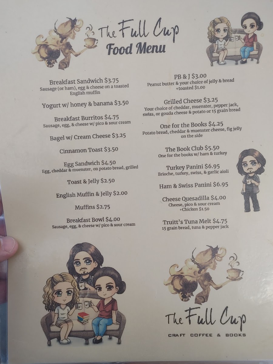 The Full Cup offers a thoughtfully curated menu that blends simple café favorites with comforting drinks and light, satisfying bites. Whether you’re stopping by for a morning pick-me-up or settling in for a quiet afternoon with a good book, the menu caters to relaxed, unhurried moments.